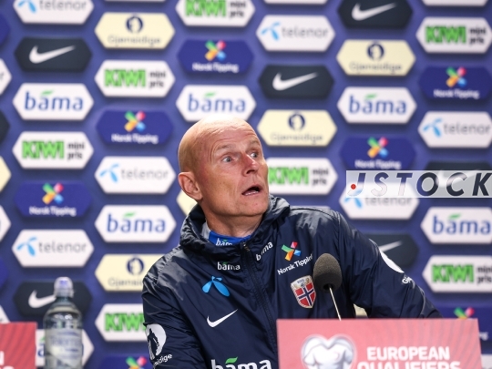 מסיבת עיתונאים נבחרת נורווגיה 10.10.25 Norway Sport Soccer Football FIFA World Cup 2026 Qualifiers Norway National Team Press Conference Training MD-1 Oslo Ullevaal Stadion Ståle Solbakken Alexander Sørloth Lise Klaveness Israel