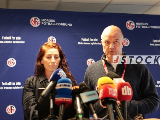מסיבת עיתונאים נבחרת נורווגיה 10.10.25 Norway Sport Soccer Football FIFA World Cup 2026 Qualifiers Norway National Team Press Conference Training MD-1 Oslo Ullevaal Stadion Ståle Solbakken Alexander Sørloth Lise Klaveness Israel