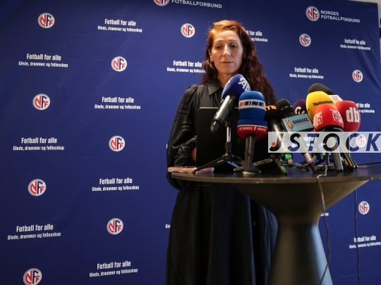 מסיבת עיתונאים נבחרת נורווגיה 10.10.25 Norway Sport Soccer Football FIFA World Cup 2026 Qualifiers Norway National Team Press Conference Training MD-1 Oslo Ullevaal Stadion Ståle Solbakken Alexander Sørloth Lise Klaveness Israel