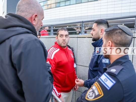 Israel Sport Soccer Football Israeli Premier League Hapoel Ironi Kiryat Shmona Hapoel Tel Aviv Netanya Netanya Stadium Police Fan Protest Clothing Inspection
