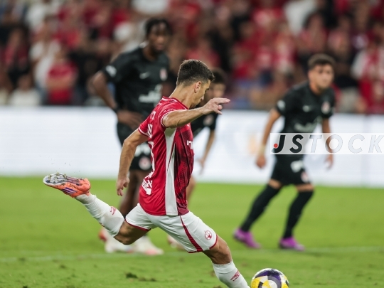FBL-ISR Israeli Premier League Matchday 1 – Maccabi Netanya (in yellow) vs. Hapoel Be'er Sheva (in red), August 24, 2025, Netanya Stadium, Netanya, Israel.