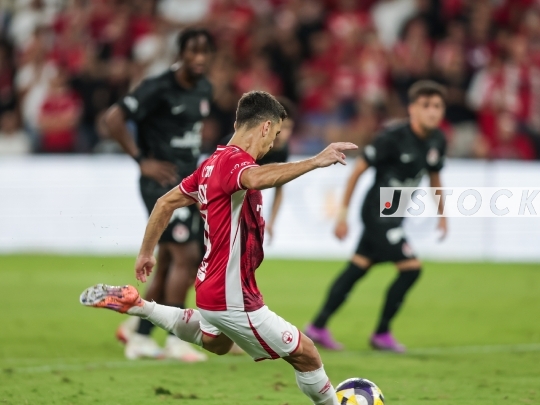 FBL-ISR Israeli Premier League Matchday 1 – Maccabi Netanya (in yellow) vs. Hapoel Be'er Sheva (in red), August 24, 2025, Netanya Stadium, Netanya, Israel.