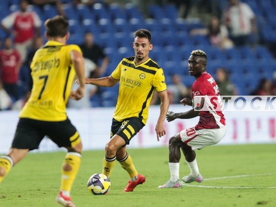 FBL-ISR Israeli Premier League Matchday 1 – Maccabi Netanya (in yellow) vs. Hapoel Be'er Sheva (in red), August 24, 2025, Netanya Stadium, Netanya, Israel.