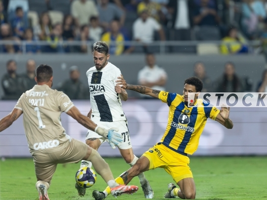 FBL-ISR Israeli Premier League Matchday 10 – Maccabi Tel Aviv (in yellow) vs. Beitar Jerusalem (in white), November 09, 2025, Bloomfield Stadium, Tel Aviv, Israel.