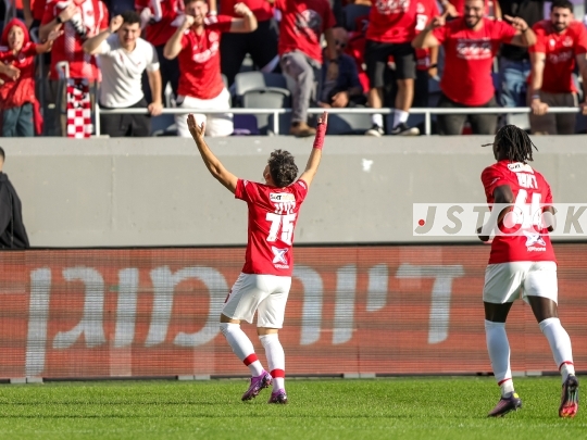 FBL-ISR Israeli Premier League Matchday 15 – Hapoel Tel Aviv (in red and white) vs. Maccabi Bnei Reineh (in yellow), December 20, 2025, Bloomfield Stadium, Tel Aviv, Israel.