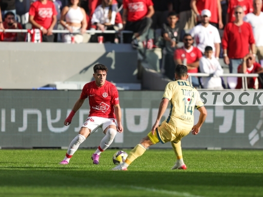 FBL-ISR Israeli Premier League Matchday 15 – Hapoel Tel Aviv (in red and white) vs. Maccabi Bnei Reineh (in yellow), December 20, 2025, Bloomfield Stadium, Tel Aviv, Israel.