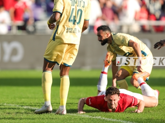 FBL-ISR Israeli Premier League Matchday 15 – Hapoel Tel Aviv (in red and white) vs. Maccabi Bnei Reineh (in yellow), December 20, 2025, Bloomfield Stadium, Tel Aviv, Israel.