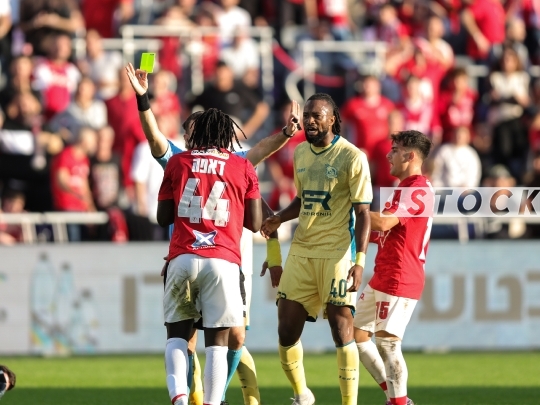 FBL-ISR Israeli Premier League Matchday 15 – Hapoel Tel Aviv (in red and white) vs. Maccabi Bnei Reineh (in yellow), December 20, 2025, Bloomfield Stadium, Tel Aviv, Israel.