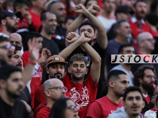 FBL-ISR Israeli Premier League Matchday 15 – Hapoel Tel Aviv (in red and white) vs. Maccabi Bnei Reineh (in yellow), December 20, 2025, Bloomfield Stadium, Tel Aviv, Israel.