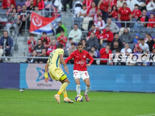 FBL-ISR Israeli Premier League Matchday 15 – Hapoel Tel Aviv (in red and white) vs. Maccabi Bnei Reineh (in yellow), December 20, 2025, Bloomfield Stadium, Tel Aviv, Israel.