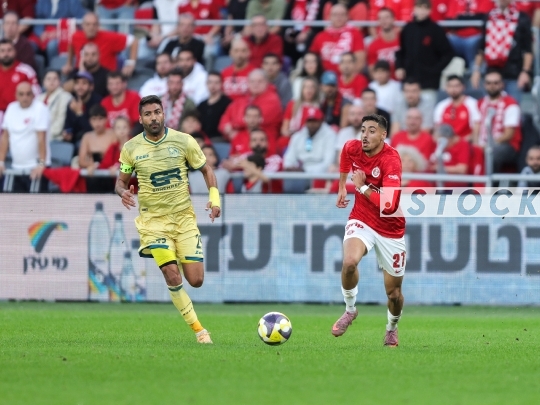 FBL-ISR Israeli Premier League Matchday 15 – Hapoel Tel Aviv (in red and white) vs. Maccabi Bnei Reineh (in yellow), December 20, 2025, Bloomfield Stadium, Tel Aviv, Israel.