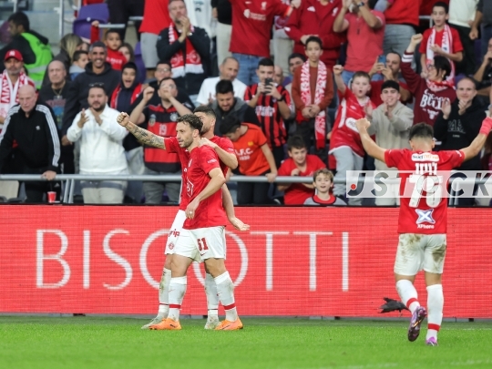 FBL-ISR Israeli Premier League Matchday 15 – Hapoel Tel Aviv (in red and white) vs. Maccabi Bnei Reineh (in yellow), December 20, 2025, Bloomfield Stadium, Tel Aviv, Israel.