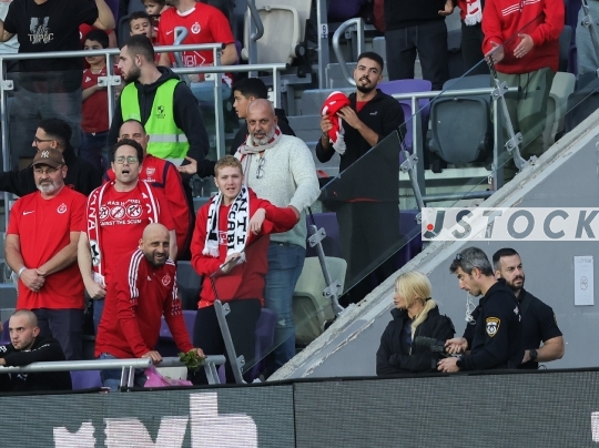 FBL-ISR Israeli Premier League Matchday 15 – Hapoel Tel Aviv (in red and white) vs. Maccabi Bnei Reineh (in yellow), December 20, 2025, Bloomfield Stadium, Tel Aviv, Israel.