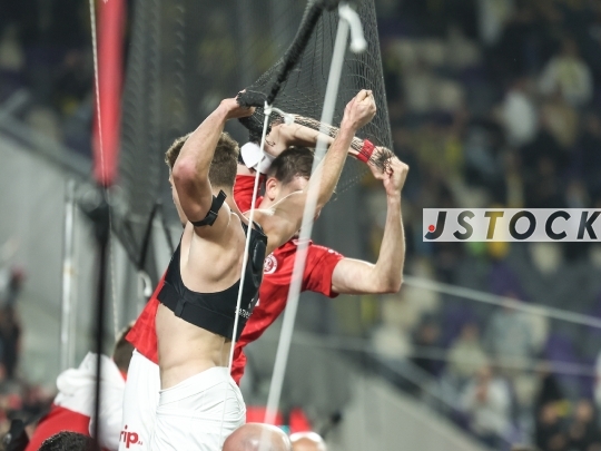 FBL-ISR Israeli Premier League Matchday 20 – Maccabi Tel Aviv (in yellow) vs. Hapoel Tel Aviv (in red and white), January 26, 2026, Bloomfield Stadium, Tel Aviv, Israel. After 12 years without a derby win, Hapoel Tel Aviv won 2-1, sparking celebrations in red.