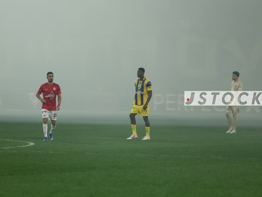 FBL-ISR Israeli Premier League Matchday 20 – Maccabi Tel Aviv (in yellow) vs. Hapoel Tel Aviv (in red and white), January 26, 2026, Bloomfield Stadium, Tel Aviv, Israel. After 12 years without a derby win, Hapoel Tel Aviv won 2-1, sparking celebrations in red.