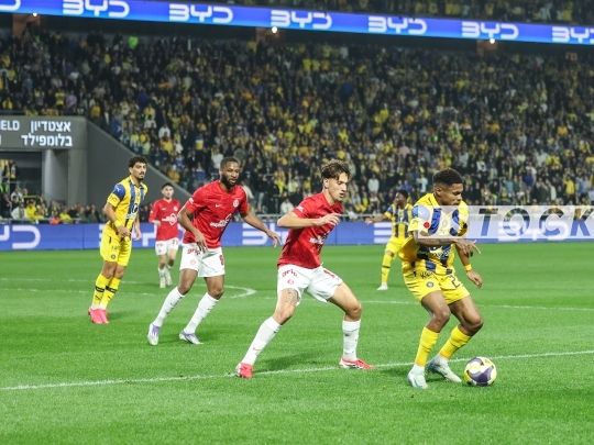 FBL-ISR Israeli Premier League Matchday 20 – Maccabi Tel Aviv (in yellow) vs. Hapoel Tel Aviv (in red and white), January 26, 2026, Bloomfield Stadium, Tel Aviv, Israel. After 12 years without a derby win, Hapoel Tel Aviv won 2-1, sparking celebrations in red.
