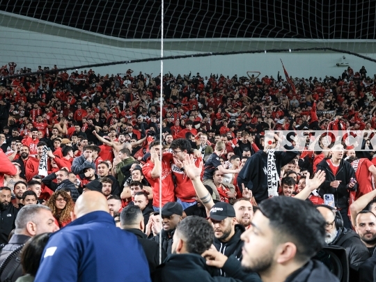 FBL-ISR Israeli Premier League Matchday 20 – Maccabi Tel Aviv (in yellow) vs. Hapoel Tel Aviv (in red and white), January 26, 2026, Bloomfield Stadium, Tel Aviv, Israel. After 12 years without a derby win, Hapoel Tel Aviv won 2-1, sparking celebrations in red.
