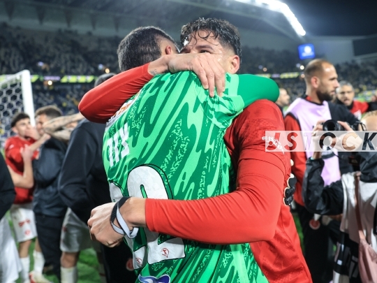 FBL-ISR Israeli Premier League Matchday 20 – Maccabi Tel Aviv (in yellow) vs. Hapoel Tel Aviv (in red and white), January 26, 2026, Bloomfield Stadium, Tel Aviv, Israel. After 12 years without a derby win, Hapoel Tel Aviv won 2-1, sparking celebrations in red.
