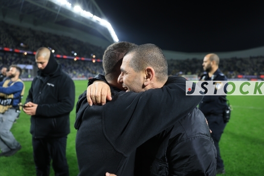FBL-ISR Israeli Premier League Matchday 20 – Maccabi Tel Aviv (in yellow) vs. Hapoel Tel Aviv (in red and white), January 26, 2026, Bloomfield Stadium, Tel Aviv, Israel. After 12 years without a derby win, Hapoel Tel Aviv won 2-1, sparking celebrations in red.