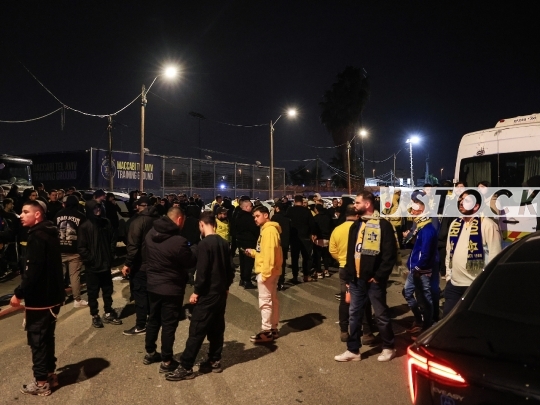 FBL-ISR Israeli Premier League Matchday 20 – Maccabi Tel Aviv (in yellow) vs. Hapoel Tel Aviv (in red and white), January 26, 2026, Bloomfield Stadium, Tel Aviv, Israel. After 12 years without a derby win, Hapoel Tel Aviv won 2-1, sparking celebrations in red.