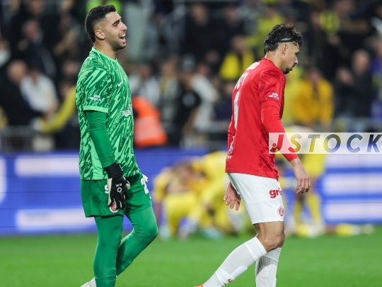 FBL-ISR Israeli Premier League Matchday 20 – Maccabi Tel Aviv (in yellow) vs. Hapoel Tel Aviv (in red and white), January 26, 2026, Bloomfield Stadium, Tel Aviv, Israel. After 12 years without a derby win, Hapoel Tel Aviv won 2-1, sparking celebrations in red.