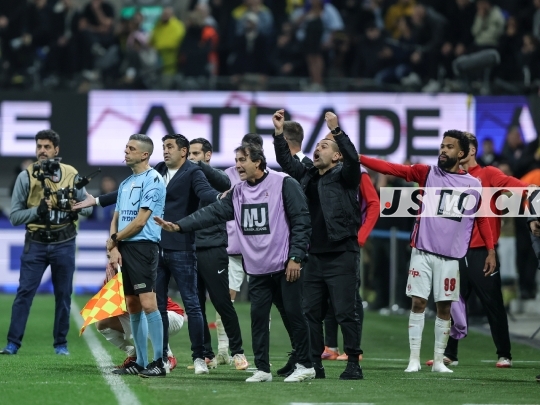 FBL-ISR Israeli Premier League Matchday 20 – Maccabi Tel Aviv (in yellow) vs. Hapoel Tel Aviv (in red and white), January 26, 2026, Bloomfield Stadium, Tel Aviv, Israel. After 12 years without a derby win, Hapoel Tel Aviv won 2-1, sparking celebrations in red.