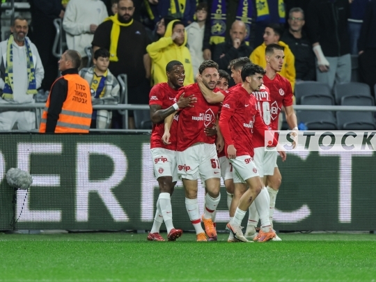 FBL-ISR Israeli Premier League Matchday 20 – Maccabi Tel Aviv (in yellow) vs. Hapoel Tel Aviv (in red and white), January 26, 2026, Bloomfield Stadium, Tel Aviv, Israel. After 12 years without a derby win, Hapoel Tel Aviv won 2-1, sparking celebrations in red.