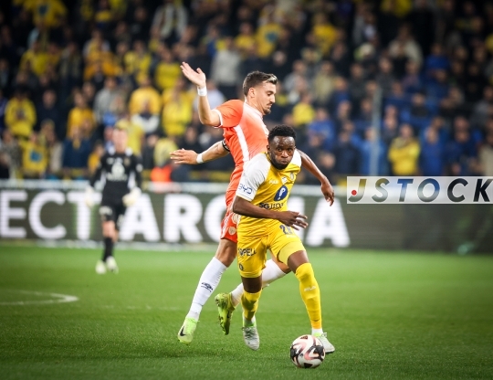 FBL-ISR Israeli Premier League Matchday 21 – Maccabi Tel Aviv (in yellow and white) vs. Beitar Jerusalem (in orange kits to identify with the Bibas family who were murdered in Hamas captivity), February 03, 2025, Bloomfield Stadium, Tel Aviv, Israel.