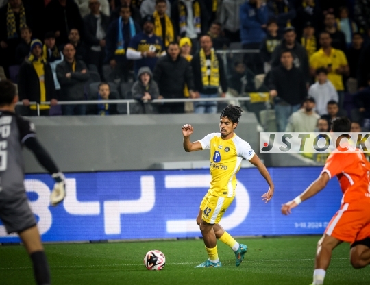 FBL-ISR Israeli Premier League Matchday 21 – Maccabi Tel Aviv (in yellow and white) vs. Beitar Jerusalem (in orange kits to identify with the Bibas family who were murdered in Hamas captivity), February 03, 2025, Bloomfield Stadium, Tel Aviv, Israel.