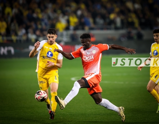 FBL-ISR Israeli Premier League Matchday 21 – Maccabi Tel Aviv (in yellow and white) vs. Beitar Jerusalem (in orange kits to identify with the Bibas family who were murdered in Hamas captivity), February 03, 2025, Bloomfield Stadium, Tel Aviv, Israel.