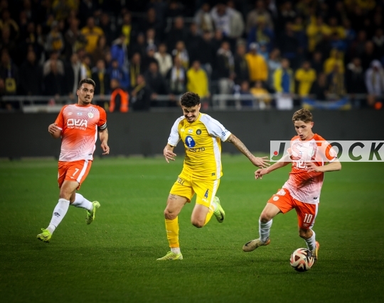 FBL-ISR Israeli Premier League Matchday 21 – Maccabi Tel Aviv (in yellow and white) vs. Beitar Jerusalem (in orange kits to identify with the Bibas family who were murdered in Hamas captivity), February 03, 2025, Bloomfield Stadium, Tel Aviv, Israel.