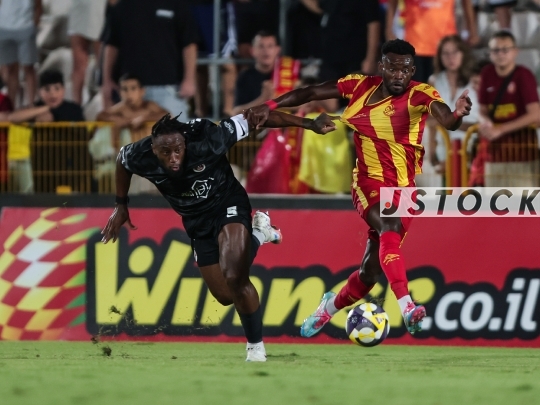 FBL-ISR Israeli Premier League Matchday 4 – FC Ashdod (in red with yellow stripes) vs. Hapoel Tel Aviv (in black), September 20, 2025, Yud-Alef Stadium, Ashdod, Israel.
