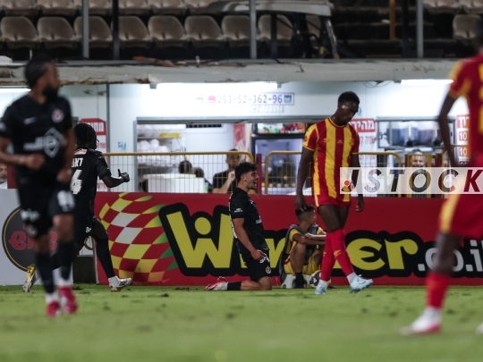 FBL-ISR Israeli Premier League Matchday 4 – FC Ashdod (in red with yellow stripes) vs. Hapoel Tel Aviv (in black), September 20, 2025, Yud-Alef Stadium, Ashdod, Israel.
