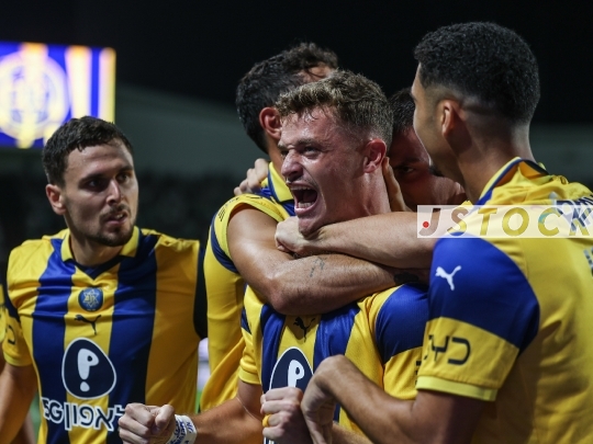 FBL-ISR Israeli Premier League Matchday 6 – Maccabi Tel Aviv (in yellow) vs. Maccabi Haifa (in white and green), October 05, 2025, Bloomfield Stadium, Tel Aviv, Israel.