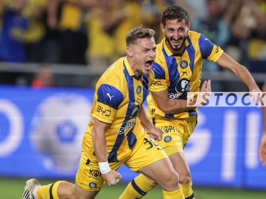 FBL-ISR Israeli Premier League Matchday 6 – Maccabi Tel Aviv (in yellow) vs. Maccabi Haifa (in white and green), October 05, 2025, Bloomfield Stadium, Tel Aviv, Israel.