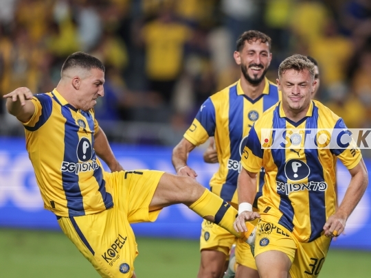 FBL-ISR Israeli Premier League Matchday 6 – Maccabi Tel Aviv (in yellow) vs. Maccabi Haifa (in white and green), October 05, 2025, Bloomfield Stadium, Tel Aviv, Israel.