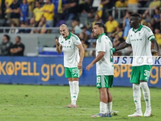 FBL-ISR Israeli Premier League Matchday 6 – Maccabi Tel Aviv (in yellow) vs. Maccabi Haifa (in white and green), October 05, 2025, Bloomfield Stadium, Tel Aviv, Israel.