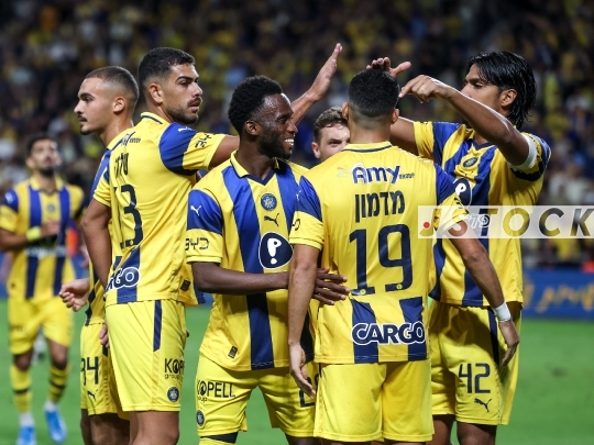 FBL-ISR Israeli Premier League Matchday 8 – Maccabi Tel Aviv (in yellow) vs. Hapoel Ironi Kiryat Shmona (in blue), October 27, 2025, Bloomfield Stadium, Tel Aviv, Israel.