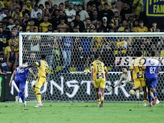 FBL-ISR Israeli Premier League Matchday 8 – Maccabi Tel Aviv (in yellow) vs. Hapoel Ironi Kiryat Shmona (in blue), October 27, 2025, Bloomfield Stadium, Tel Aviv, Israel.