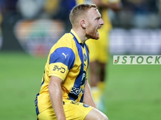 FBL-ISR Israeli Premier League Matchday 8 – Maccabi Tel Aviv (in yellow) vs. Hapoel Ironi Kiryat Shmona (in blue), October 27, 2025, Bloomfield Stadium, Tel Aviv, Israel.
