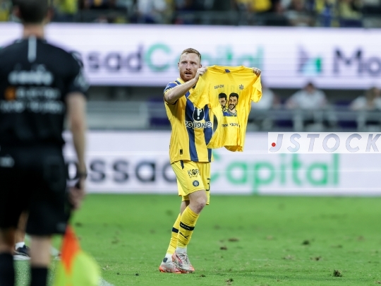 FBL-ISR Israeli Premier League Matchday 8 – Maccabi Tel Aviv (in yellow) vs. Hapoel Ironi Kiryat Shmona (in blue), October 27, 2025, Bloomfield Stadium, Tel Aviv, Israel.