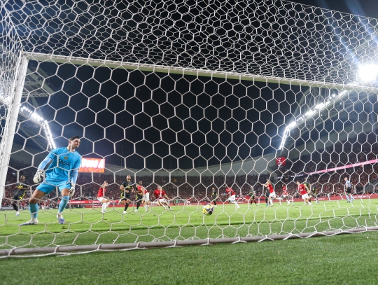 FBL-ISR Leumit League Matchday 3 – Hapoel Tel Aviv (in red and white) vs. Beitar Jerusalem (in black with a yellow stripe), September 15, 2025, Tel Aviv, Israel.