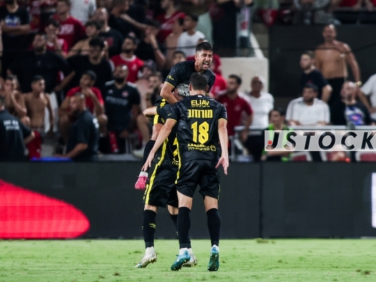 FBL-ISR Leumit League Matchday 3 – Hapoel Tel Aviv (in red and white) vs. Beitar Jerusalem (in black with a yellow stripe), September 15, 2025, Tel Aviv, Israel.