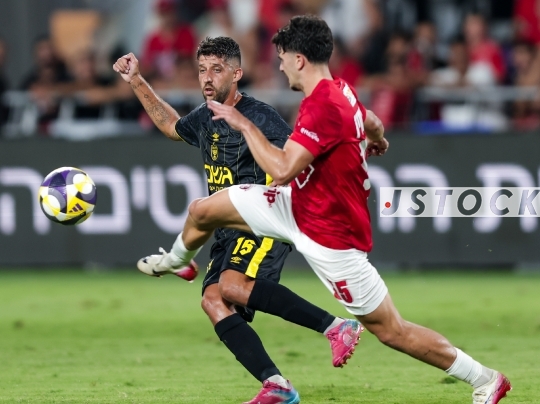 FBL-ISR Leumit League Matchday 3 – Hapoel Tel Aviv (in red and white) vs. Beitar Jerusalem (in black with a yellow stripe), September 15, 2025, Tel Aviv, Israel.