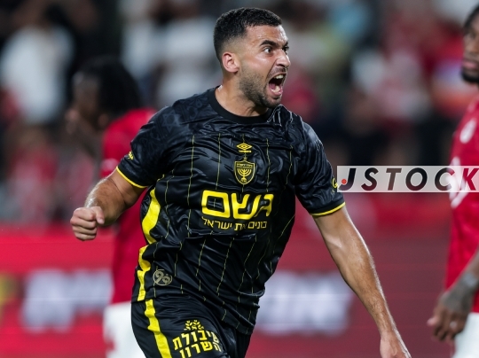 FBL-ISR Leumit League Matchday 3 – Hapoel Tel Aviv (in red and white) vs. Beitar Jerusalem (in black with a yellow stripe), September 15, 2025, Tel Aviv, Israel.