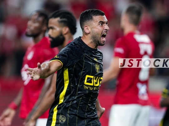 FBL-ISR Leumit League Matchday 3 – Hapoel Tel Aviv (in red and white) vs. Beitar Jerusalem (in black with a yellow stripe), September 15, 2025, Tel Aviv, Israel.