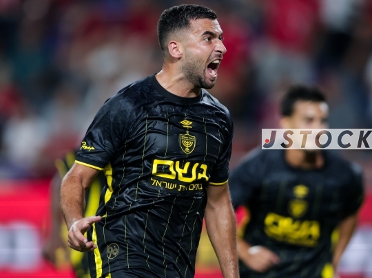 FBL-ISR Leumit League Matchday 3 – Hapoel Tel Aviv (in red and white) vs. Beitar Jerusalem (in black with a yellow stripe), September 15, 2025, Tel Aviv, Israel.