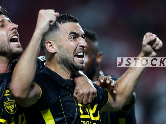 FBL-ISR Leumit League Matchday 3 – Hapoel Tel Aviv (in red and white) vs. Beitar Jerusalem (in black with a yellow stripe), September 15, 2025, Tel Aviv, Israel.