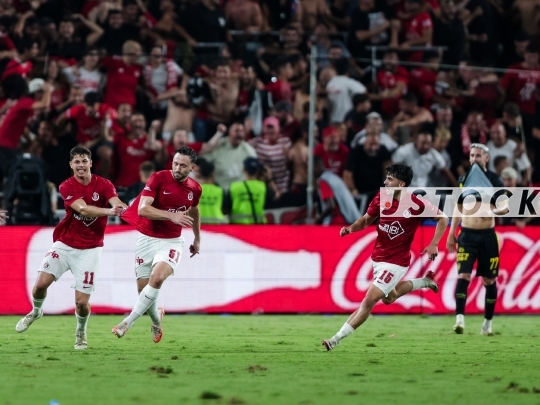 FBL-ISR Leumit League Matchday 3 – Hapoel Tel Aviv (in red and white) vs. Beitar Jerusalem (in black with a yellow stripe), September 15, 2025, Tel Aviv, Israel.
