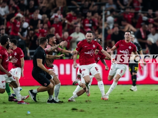FBL-ISR Leumit League Matchday 3 – Hapoel Tel Aviv (in red and white) vs. Beitar Jerusalem (in black with a yellow stripe), September 15, 2025, Tel Aviv, Israel.
